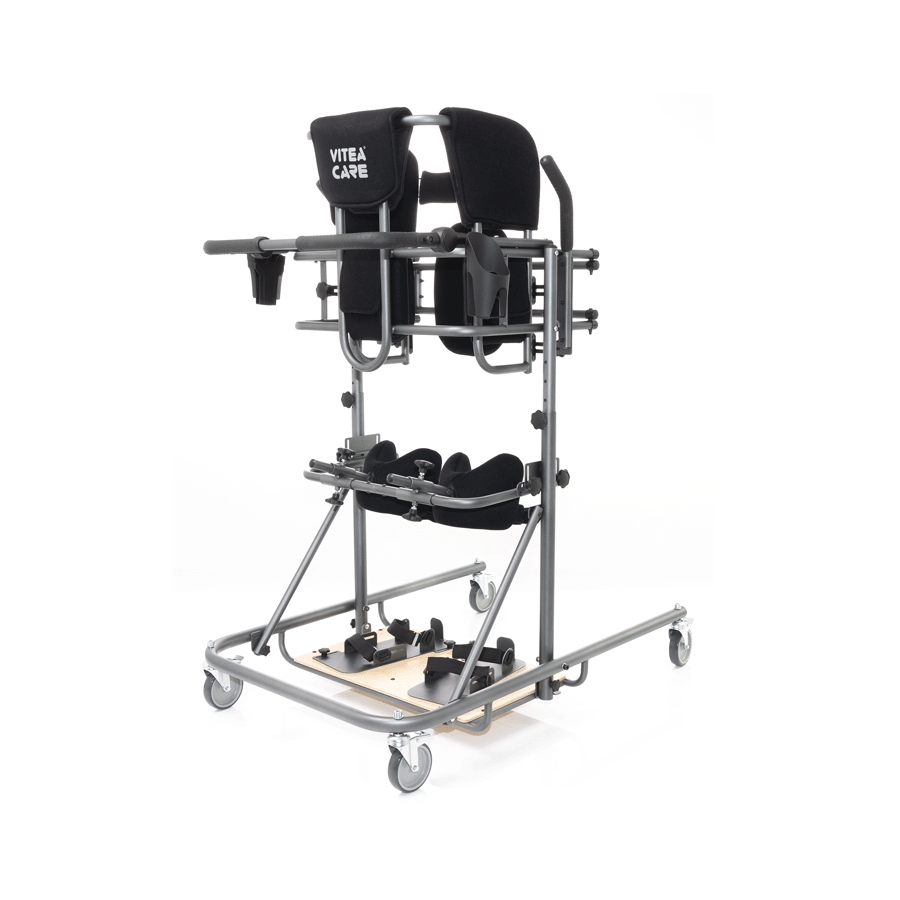 The parapodium is designed for people with orthopaedic, neurological and cardiovascular conditions, as well as for people after surgery who are unable to independently assume and maintain a standing position as a result of prolonged immobilisation. In addition to securing and supporting the user in a standing position, the device is a great help during daily activities, but also when learning and practising walking skills. Proper adjustment and fitting the device components depends on medical indications and anatomical parameters, regardless of the age of the user.